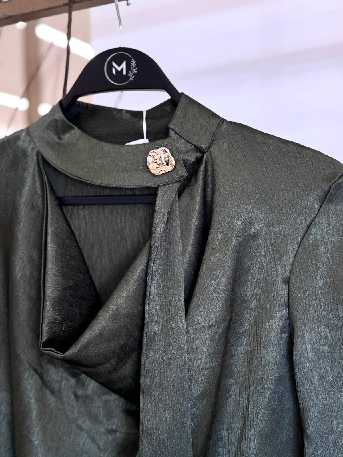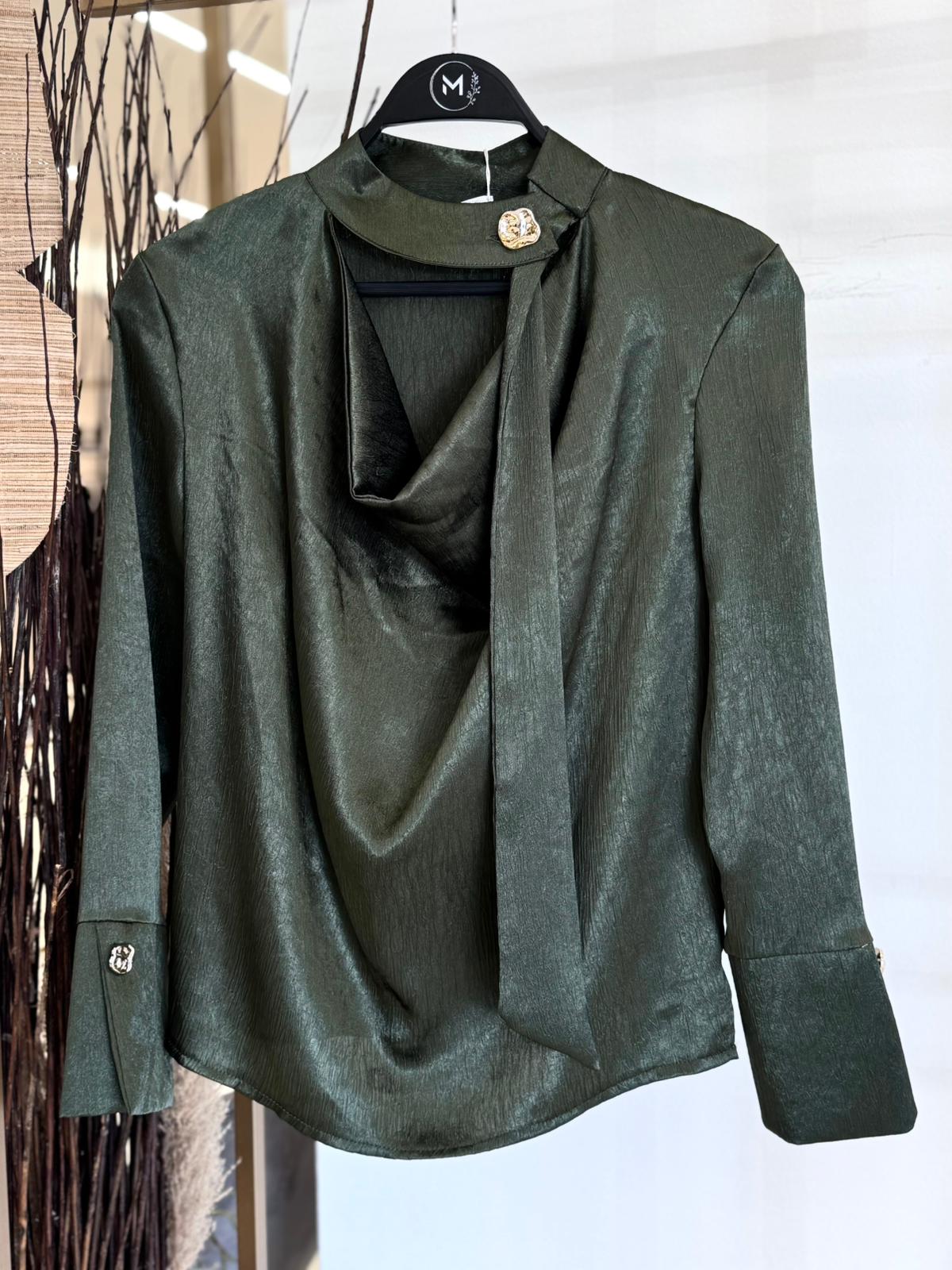 חולצת סטן שילוב כפתורים זהב