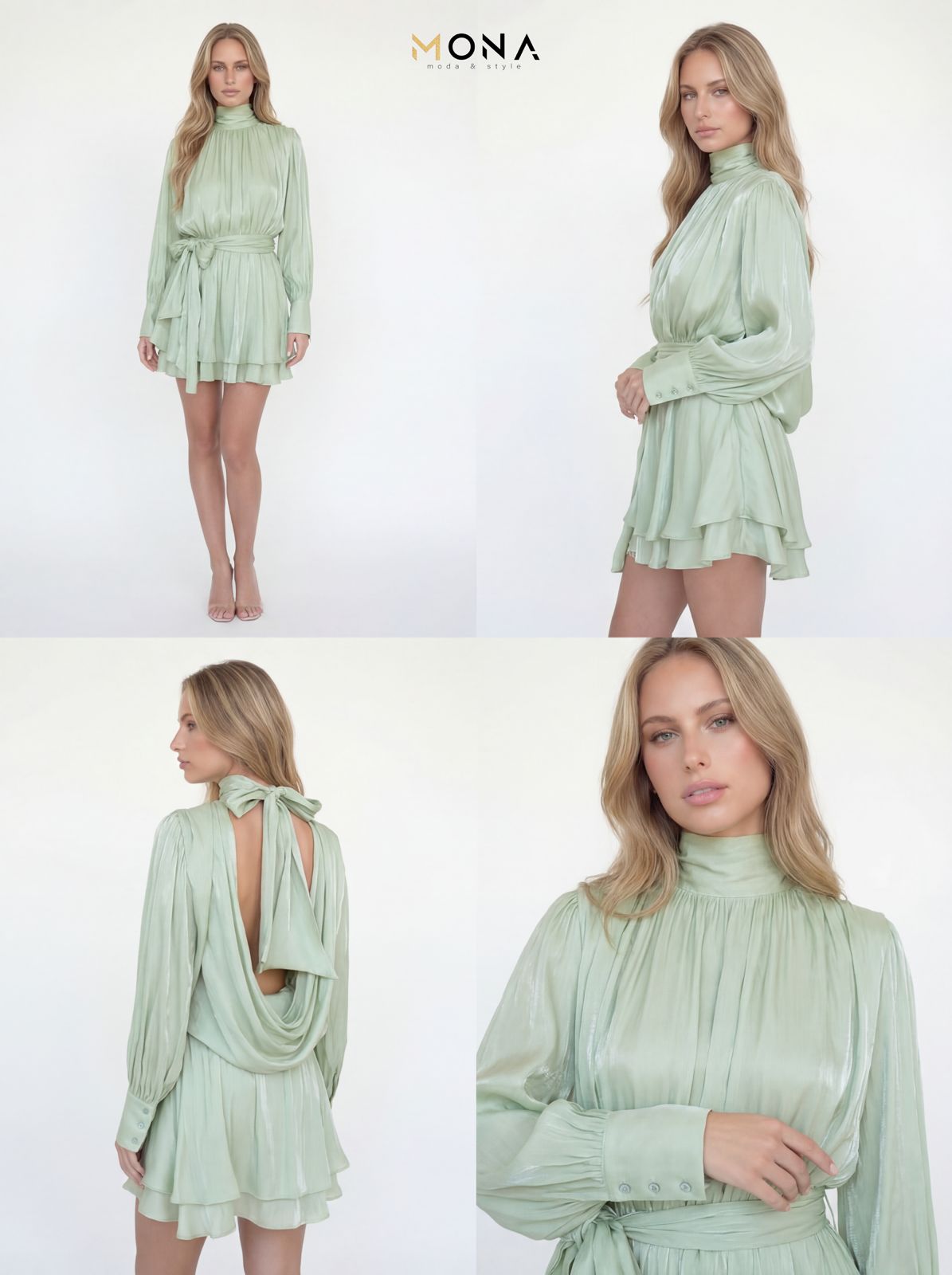 שמלת בד אורגנזה מיני קלאסית עם גב פתוח