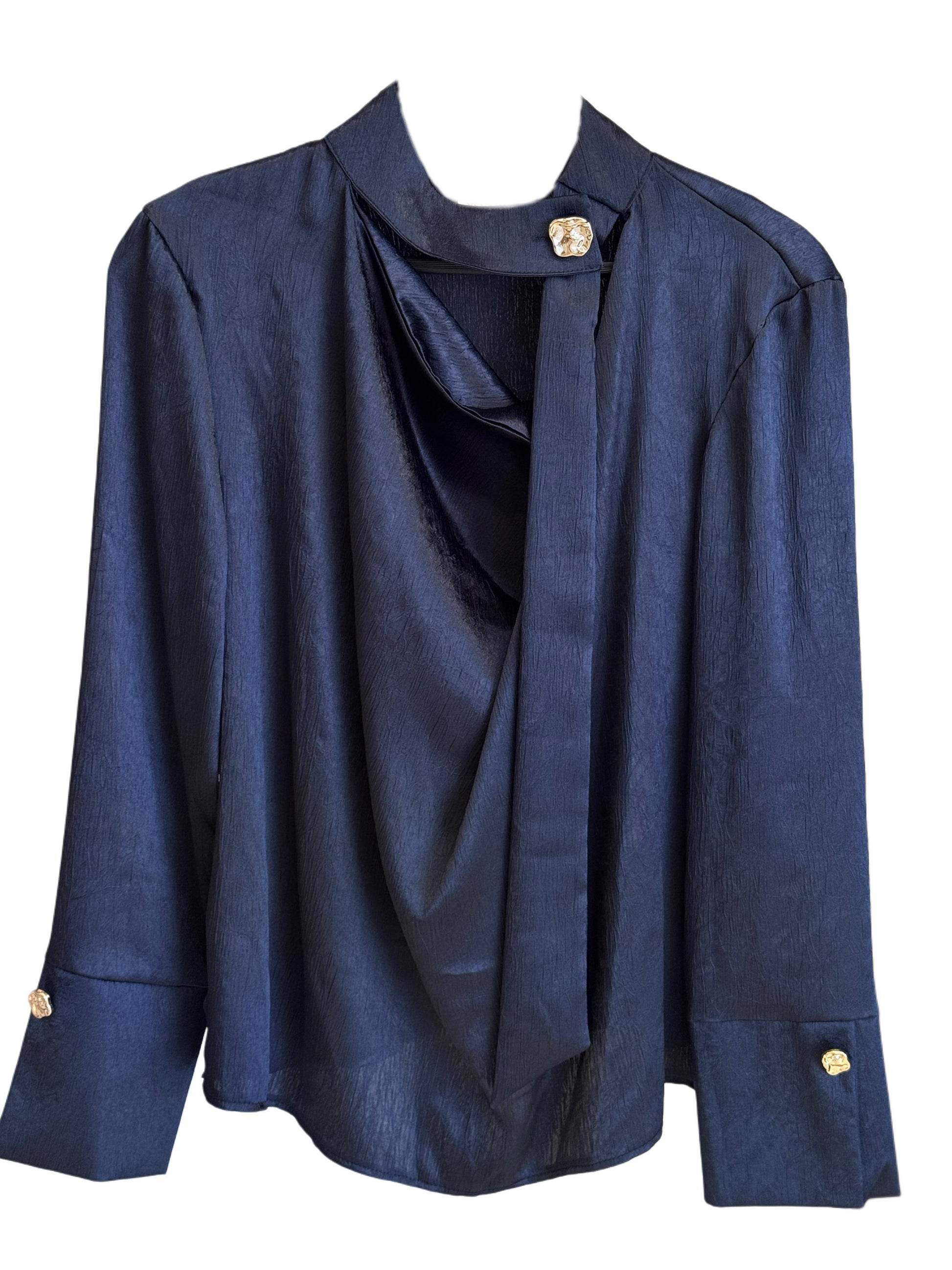 חולצת סטן שילוב כפתורים זהב